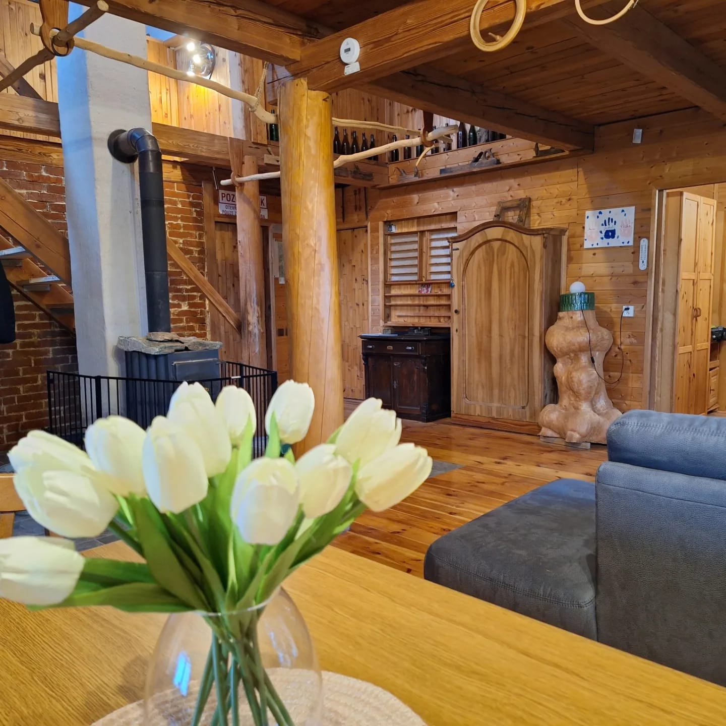 Pro zachování autentické atmosféry chaloupky jsme ponechali topení jako za starých časů – polínky do krbových kamen, která jsou umístěna ve velkém obývacím pokoji.